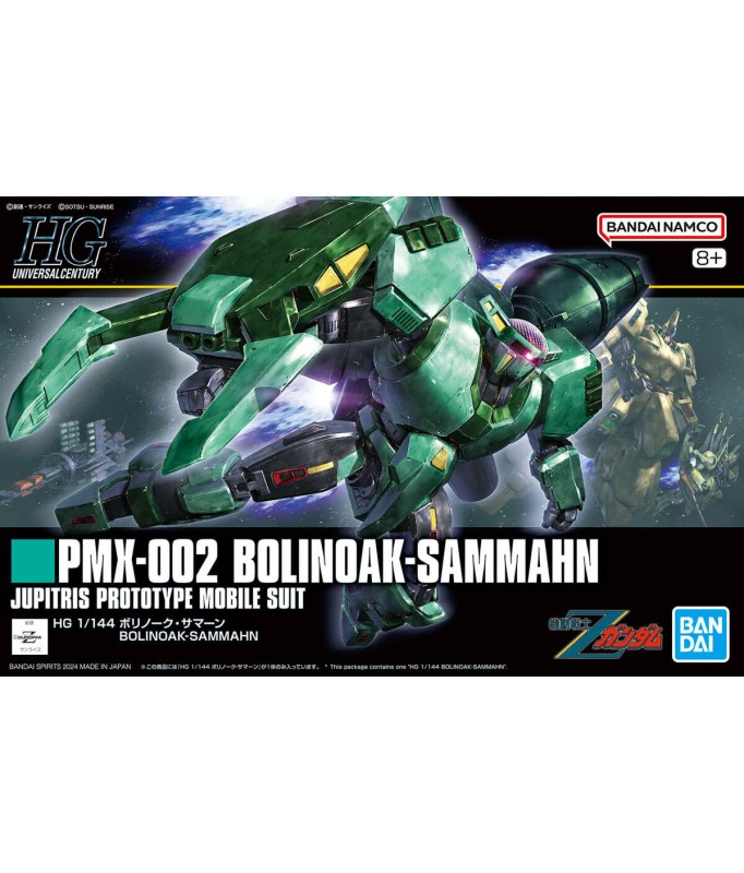 The Bolinoak Sammahn from "Mobile Suit Zeta Gundam" is now available in Bandai's "HG (High Grade)" model-kit series with the latest gimmicks! The dedicated shield has a movable gimmick in the claw section, and also reproduces fine details such as the beam output section at the tip. The Beam Tomahawk and Beam Saber can be reproduced by attaching effect parts to the grip stored on the back of the shield. The shoulder armor is equipped with a deployment gimmick to recreate the firing of the Explosive Bullet Launcher. A head part with an illuminated radome is included; the characteristic shine of the radome is reproduced with a replacement type using reflection cuts and stickers. In addition to the ball-shaped movable head, a movable axis is provided at the base of the neck, allowing it a wide range of motion. The shoulders are also equipped with a pull-out mechanism to expand their range of motion, and the backpack, which is the key to high mobility, can be moved individually thanks to its multiple ball joints. Order yours today!