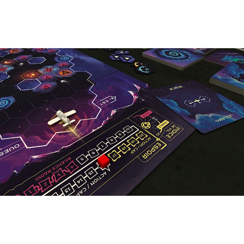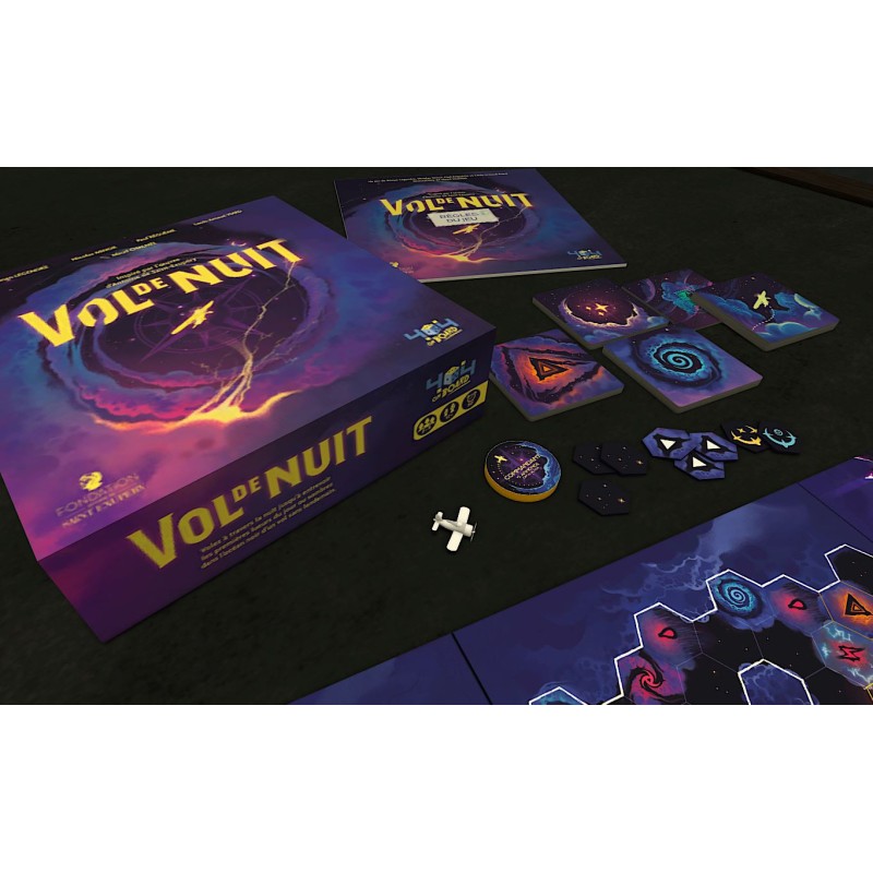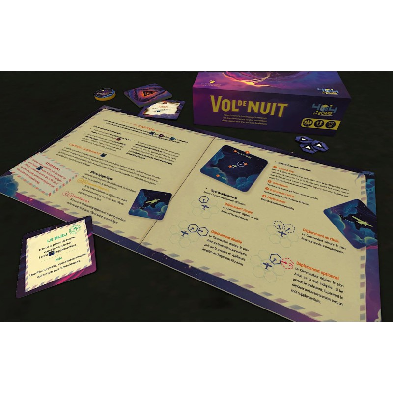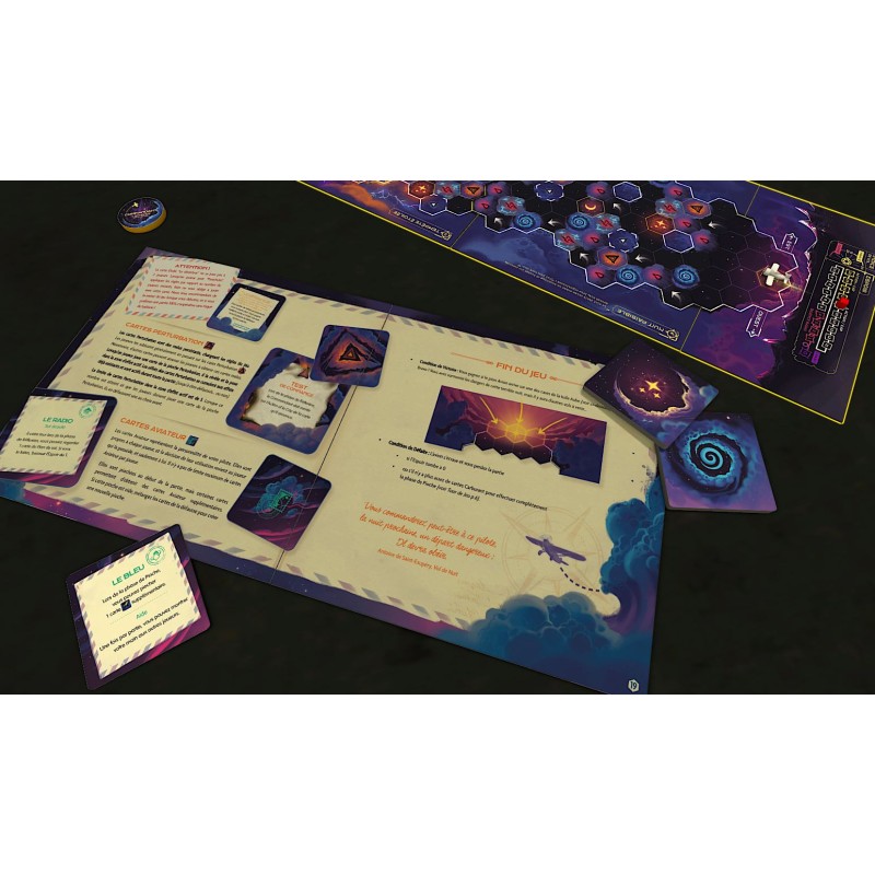 In this cooperative and family game inspired by Antoine de Saint-Exupéry's 1931 novel, the players play as a team of Aéropostale pilots, responsible for delivering the mail from Patagonia. But in the middle of the night, they will have to face many dangers: storm, wind, fog and other disturbances wave the sky.