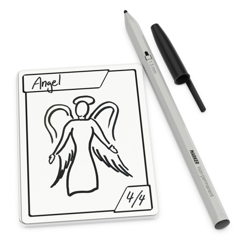 - Sleevable: use a water-soluble pen for more resistant drawings or to sleeve the tokens. To reuse them, simply wipe them with a damp towel or a few drops of rubbing alcohol.