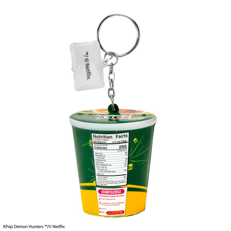 This Zoey mini squishy keychain, inspired by her playful Hamburger Noodles concept, will give your day a burst of bold flavor. The cup design is highlighted in deep emerald green and sunshine yellow tones, with fiery red accents and vibrant graphic details. From the illustrated Zoey artwork to the cute food-inspired typography and nutrition label print, every angle is dynamic, colorful, and full of personality. The soft PU texture provides a satisfying squeeze, adding a tactile layer to its vibrant design.