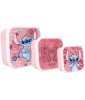 These cheerful snack boxes from Stitch are ideal for taking a snack on the go. There are 3 different sized snack boxes. Plus, each snack box is decorated with a cute Stitch print. All boxes are pink in color and close tightly. Finally, they nest easily for convenient storage.