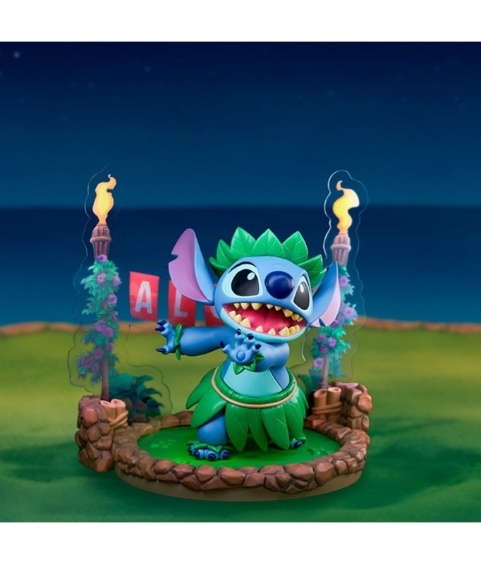 Wearing traditional Hawaiian gear and performing the Hula dance on a colorful and tropical platform, this figure captures the playful and cute nature of the galaxy's favorite alien!