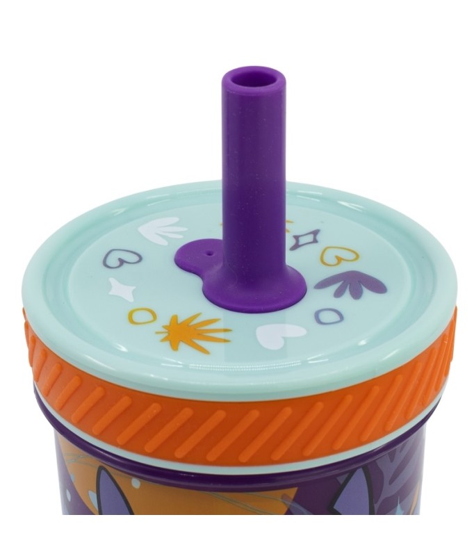 Plastic tumbler with straw the anti-tipper Smartgrip system that gets attached to any plain superface. Smartgrip does not allow the mug to tip, yet it can be easily picked up in any moment. Decorated with original designs of some of the most well-known characters of the world of TV shows and movies. A practical and functional product that never goes out of date.