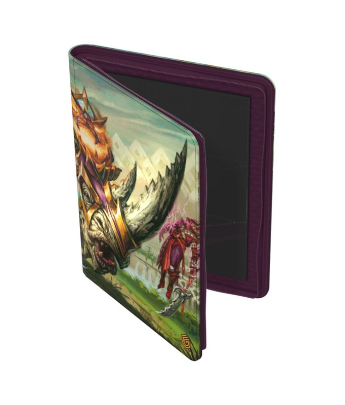 The Zipfolio 360 Xenoskin is a high-quality trading card binder made of durable Xenoskin material and fully resealable with a zipper. The album is printed with officially licensed artwork from the Tarkir: Storm of Dragons set from Magic: The Gathering and features 360 card sleeves on 20 black pages, with a convenient side entry.