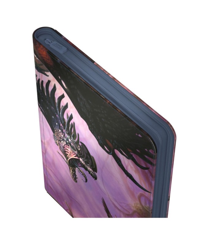 The Zipfolio 360 Xenoskin is a high-quality trading card binder made of durable Xenoskin material and fully resealable with a zipper. The album is printed with officially licensed artwork from the Tarkir: Storm of Dragons set from Magic: The Gathering and features 360 card sleeves on 20 black pages, with a convenient side entry.