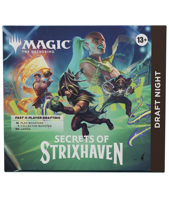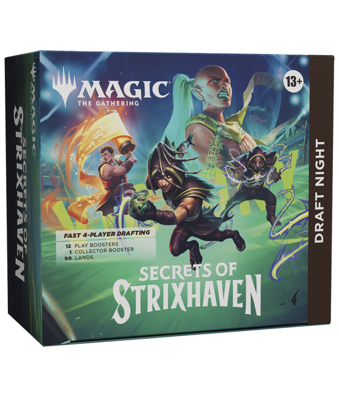 It's a draft party in a box! Draft Night has everything you need to host a Pick-Two Draft with just four players. Pick-Two encourages fast, dynamic drafting that's great for kitchen-table play or adding a dash of variety to game night. Bring Secrets of Strixhaven to the table for an unforgettable game night!