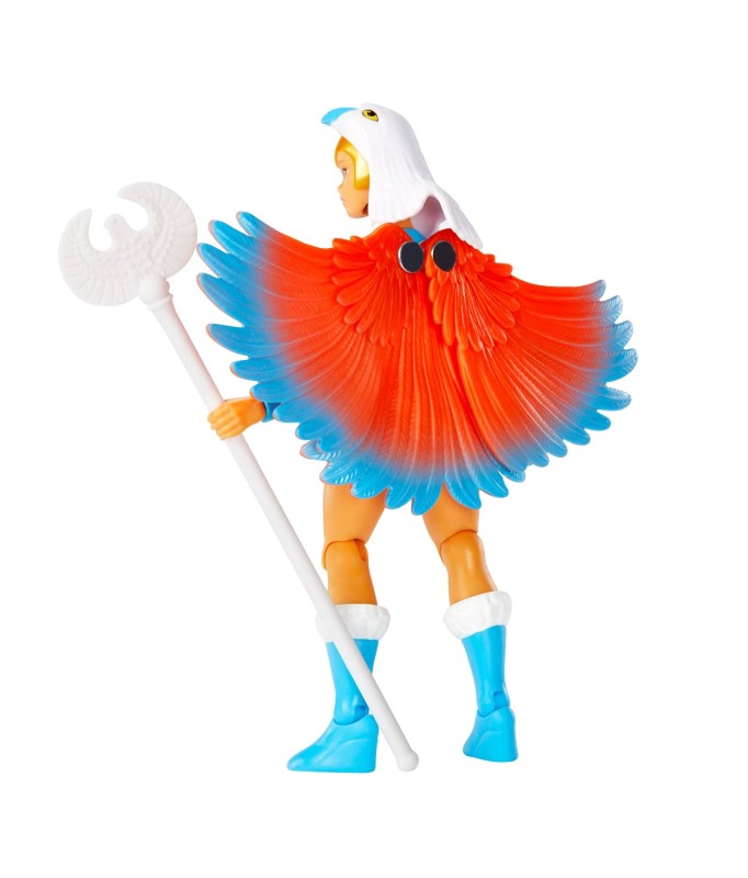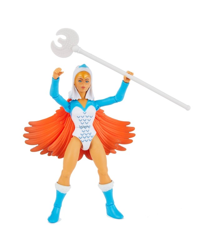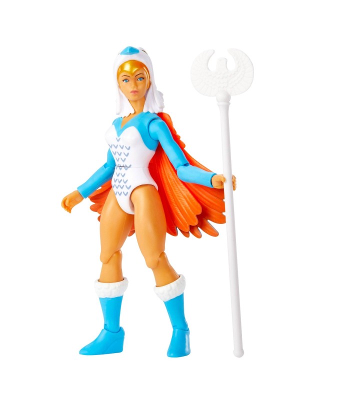 This is a pretty Sorceress figurine, faithful to the version of the character in Motu Origins. Indeed, the Enchantress of the Masters of the Universe appears with her little white and blue leotard-style costume. And her pair of wings on her back. Because the guardian of the Shadow Castle is also capable of transforming into Zoar.