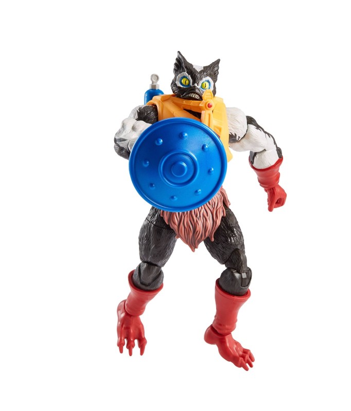 Two heads, two pairs of hands, a shield, here are the accessories that come with this Stinko (Stinker) figurine. And it is a replica of the character as he appears in the Netflix series: Masters of the Universe: Revelation. Half skunk, half human, Stinkor is recognizable by his black and white fur. And he is an enemy character of He-Man and his allies. Capable, moreover, of emitting a toxic scent when attacked...to paralyze the enemy.