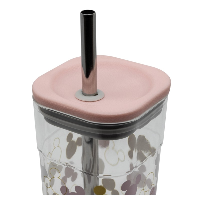 Plastic cup with a stainless steel straw. Ideal for children and to avoid accidents but also ideal to make an environmental gesture thanks to its reusable and washable straw.