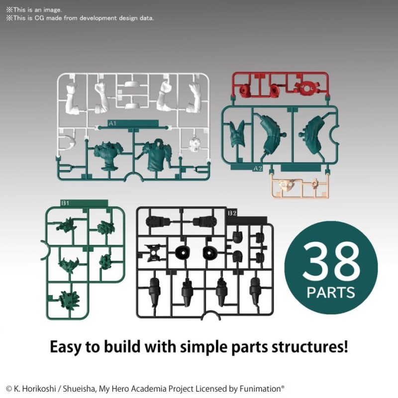 My Hero Academia fans will love assembling this Entry Grade figure of Izuku Midoriya! Dive into the fascinating world of model kits with your favorite heroes! Easy and fun, this set contains everything you need to assemble a 1/144 scale figure. 38 parts to assemble to recreate your character.