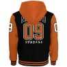 > Hooded jacket > Decorative striped knit cuffs and waistband > Long sleeves > Piped pockets > Zipper closure > Lined hood > Thick embroidery on front, back and sleeves > 100% cotton > European sizes > Under official licence