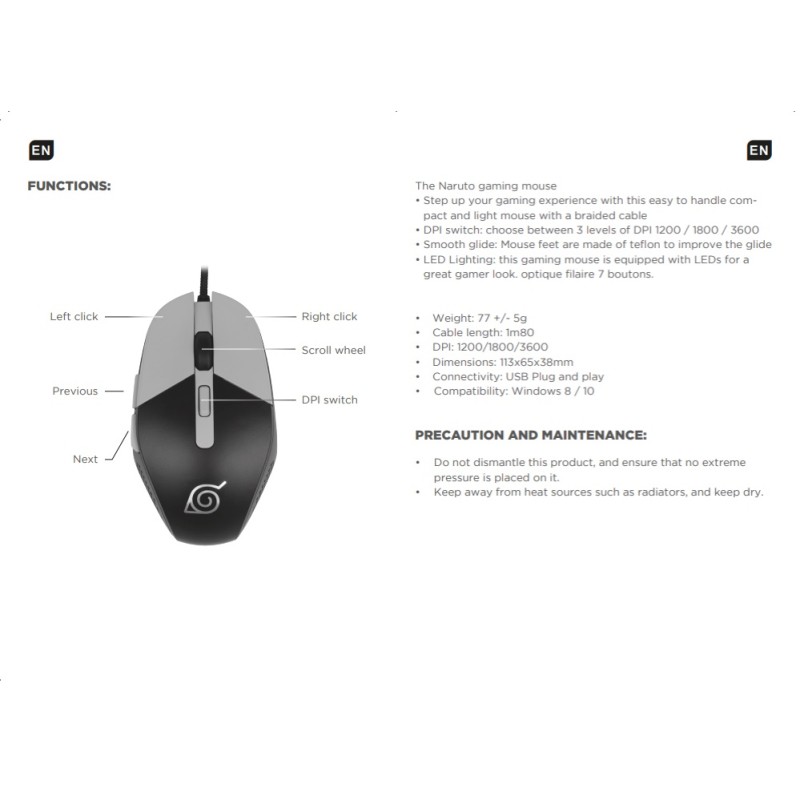 Enjoy 3 levels of DPI (1200, 1800, 3600) to adjust the mouse sensitivity according to your preferences and needs.