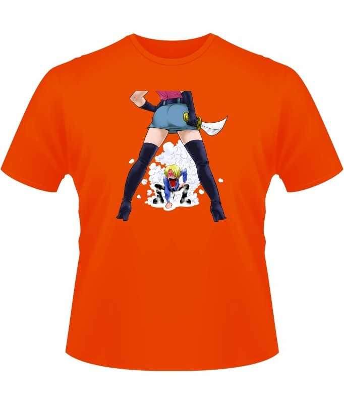 Okiwoki" parody T-shirt from the hit series "One Piece", featuring Sanji in Luffy's "Gear Second" position.