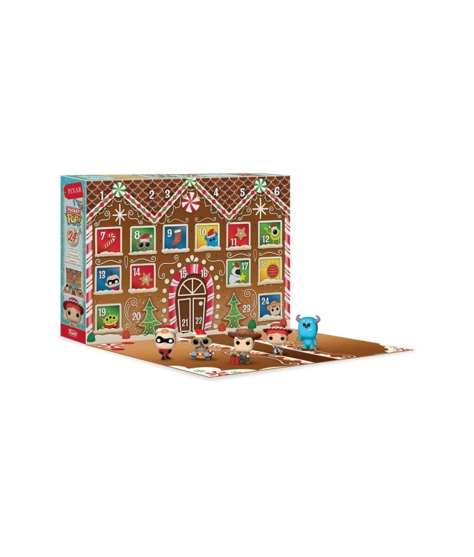 Funko POP 2024 Advent Calendar, officially licensed by Pixar. This calendar features the main licences from the Pixar universe and 24 exclusive Funko POP minifigures.