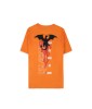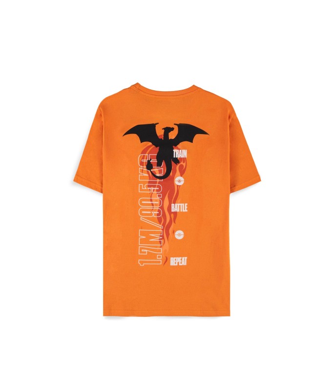 Turn the temperature up with this unique orange cotton t-shirt featuring cool graphic elements of the legendary Flame Pokémon. The front chest graphic of the famous Pokéball is HD printed with the number 006 above it. On the back, you'll find a large graphic art of Charizard rising through the flames along with other familiar character elements, all in a soft feel screen print.