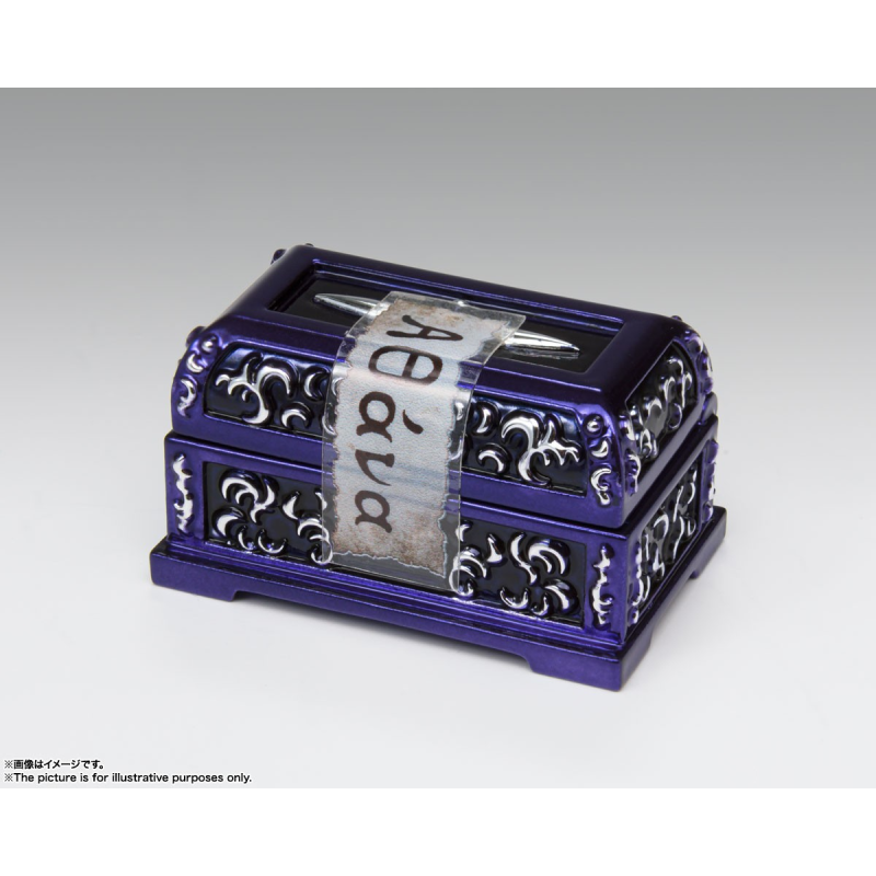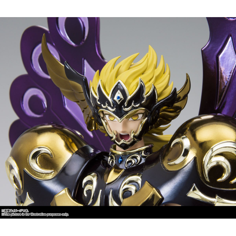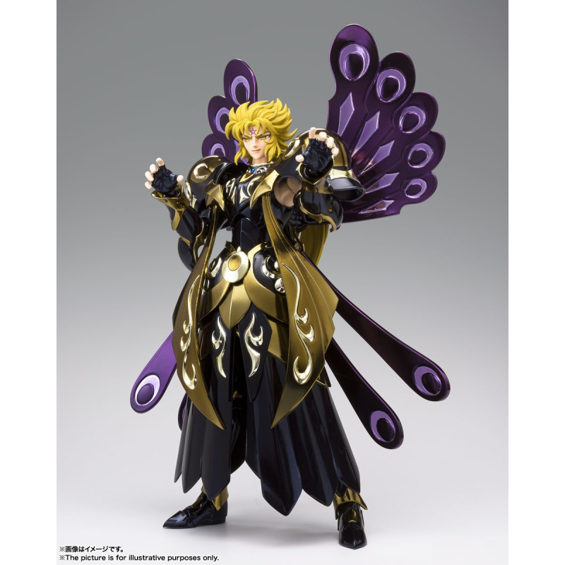 Saint Seiya Myth Cloth EX licensed figurine, with fully articulated plastic body and armour mostly made of metal, adaptable on the armour holder (also called "Object" or "Base"), delivered with the figurine.
