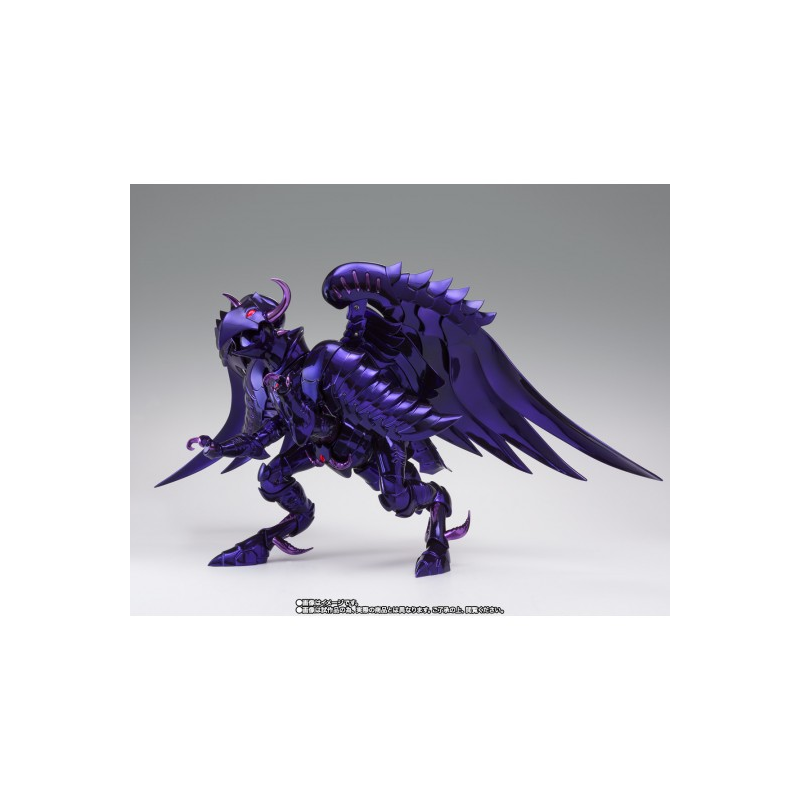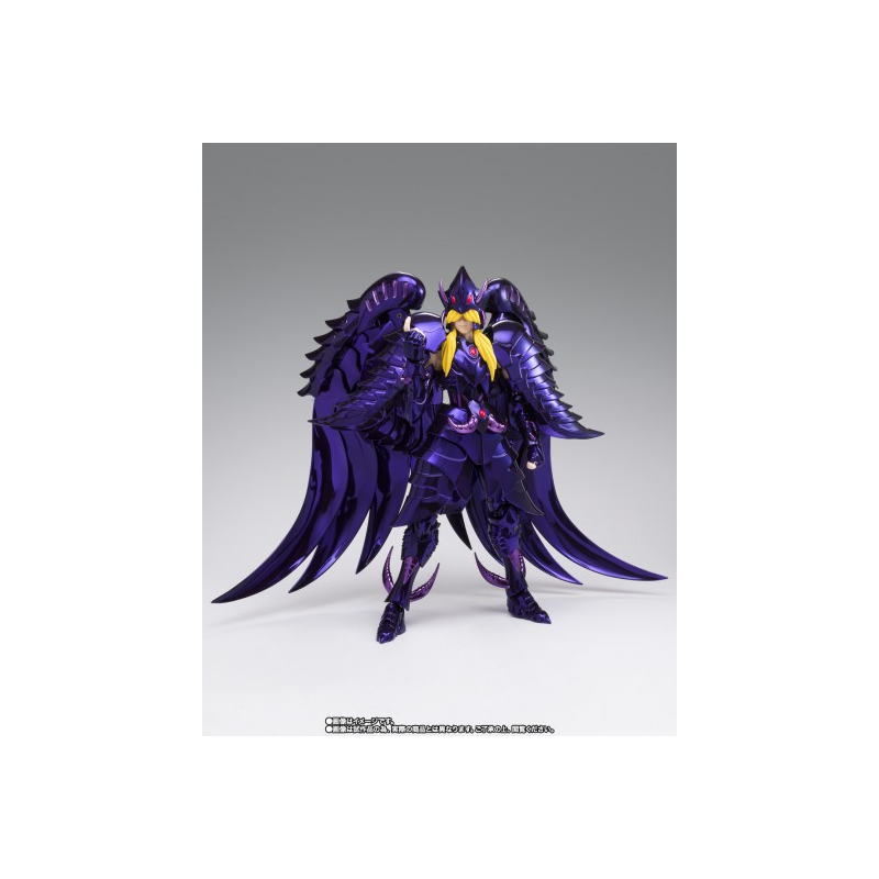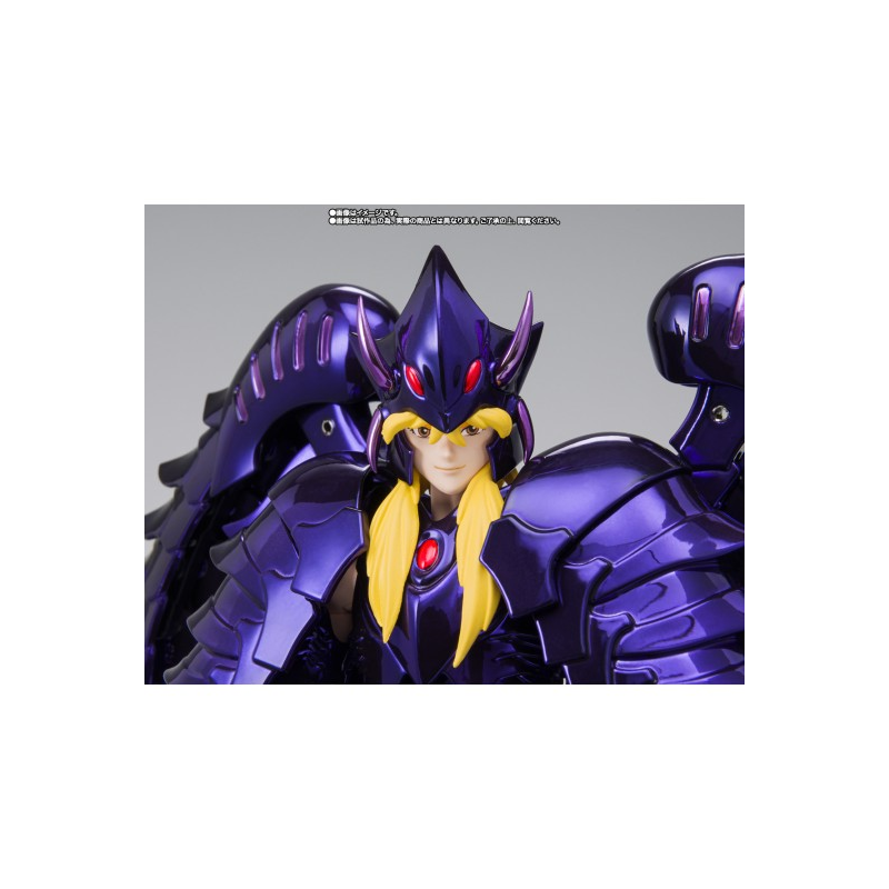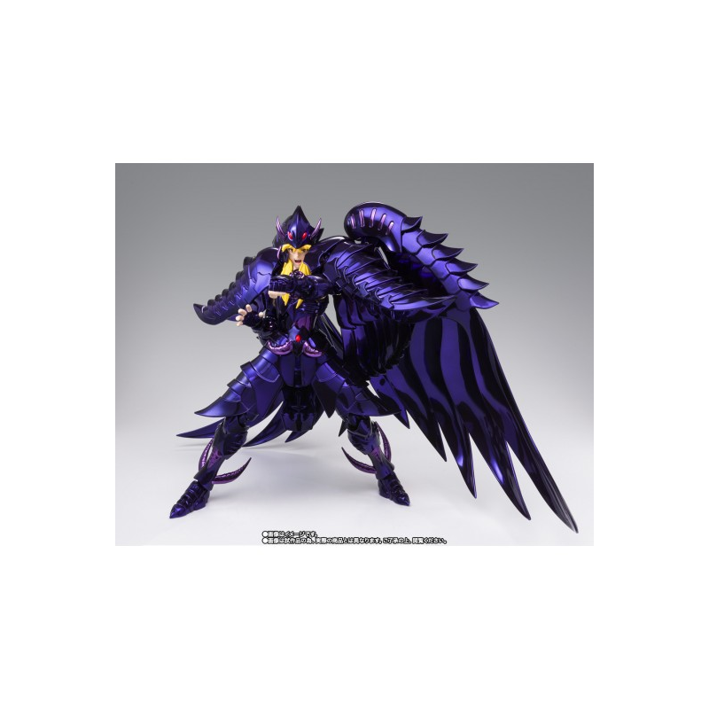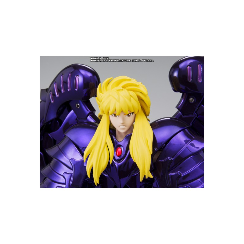 Saint Seiya Myth Cloth EX licensed figurine, with fully articulated plastic body and armour mostly made of metal, adaptable on the armour holder (also called "Object" or "Base"), delivered with the figurine.