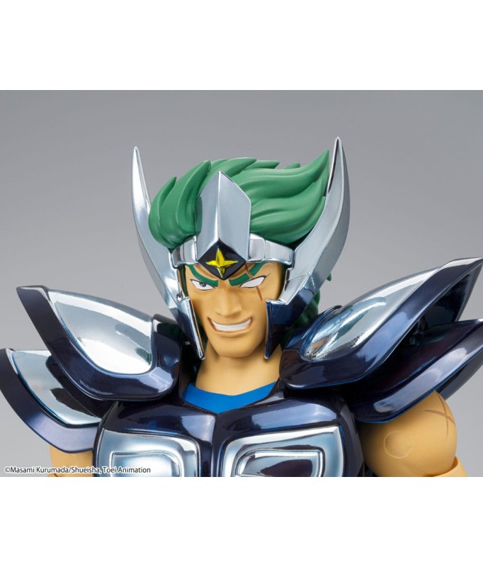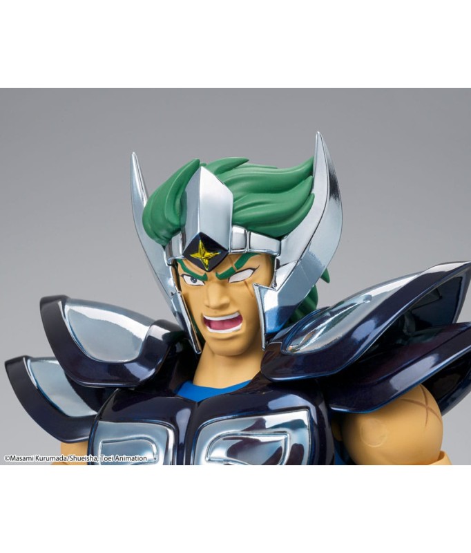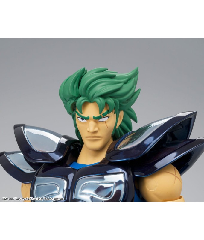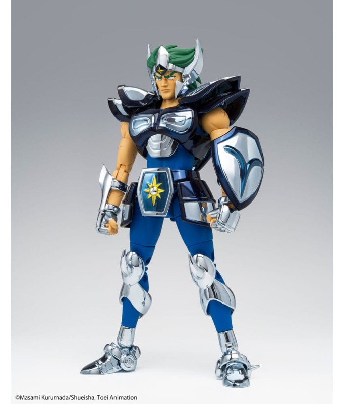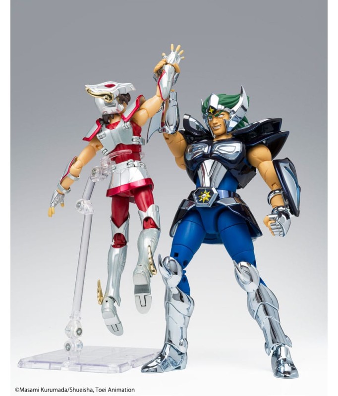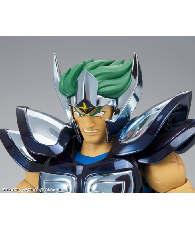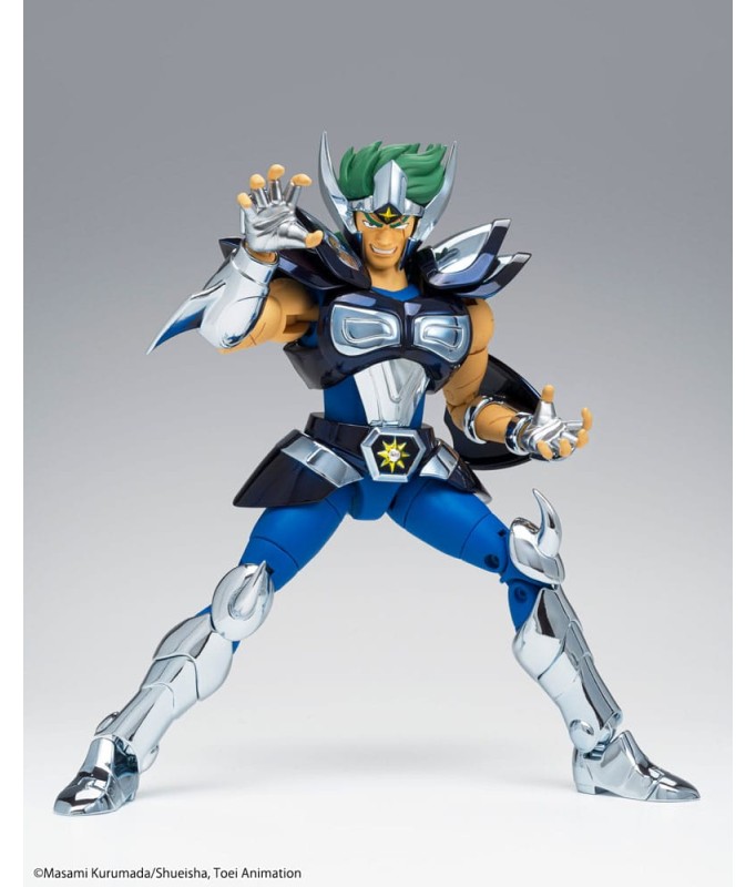 Saint Seiya Myth Cloth EX licensed figurine, with fully articulated plastic body and armour mostly made of metal, adaptable on the armour holder (also called "Object" or "Base"), delivered with the figurine.