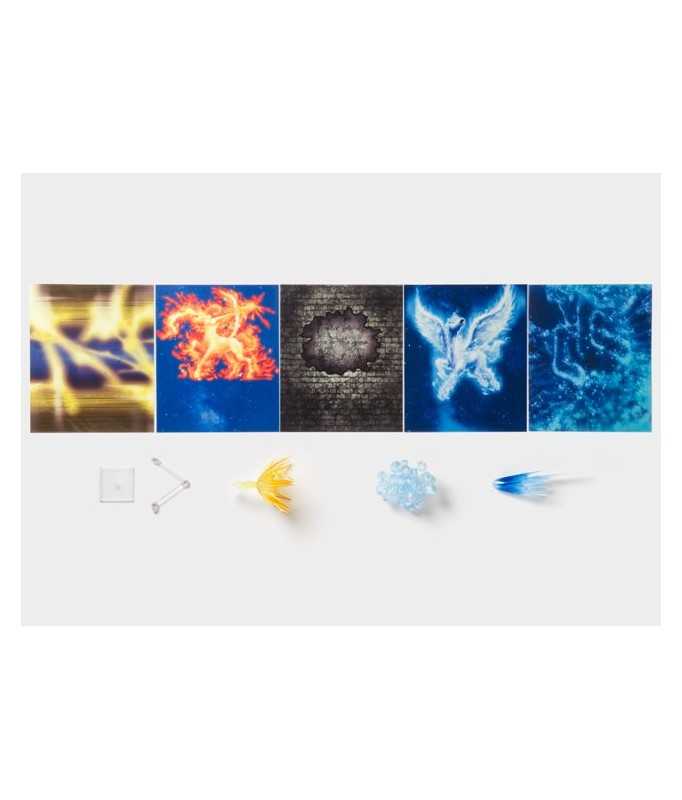 This kit includes special effects plastic attacks representing the powers of the knights Seiya of Pegasus & Aiolos of Sagittarius. Figures sold separately.