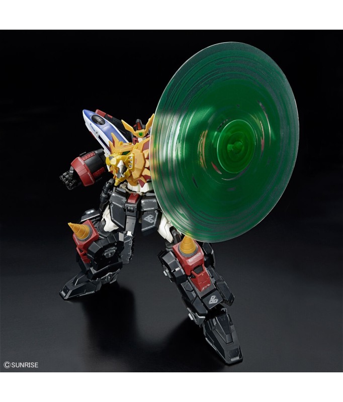 The mighty GaoGaiGar from "The King of Braves GaoGaiGar" gets a new RG-scale model kit from Bandai! It's highly accurate to its appearance in the anime, and it's jointed for a flexible range of motion while keeping its proportions accurate. It's molded in color, so you can achieve a result just like the cover illustration just by assembling it! It features a newly developed manipulator hand with movable knuckles for natural finger motion; its knees have a wider range of movement now as well. The Stealth Gao attached to its back is equipped with a heat dissipation fin-opening gimmick when the Hell And Heaven move is activated; the Dividing Driver uses metal parts for an accurate texture, with a built-in spring and a telescopic shaft. Effect parts are included for the activation of the Protect Shade, and fixed large hand parts are included for the activation of the Hell And Heaven! Order this amazing robot for your own collection now!