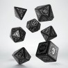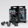 Ce jeu de dés Bloodsucker est noir comme la nuit des aventures d'horreur, avec un verre de coca noir et la voix grave du maître de jeu, qui nous raconte des histoires effrayantes sur le pays des vampires peuplé de corbeaux et de Bloodsuckers. La gravure profonde, semblable à la meilleure ferronnerie de cimetière, est remplie de peinture au vif-argent (non toxique) qui rappelle les nuits silencieuses et les brumes pleines de vampires. La lumière morbide des jeux auxquels jouait notre créateur nous a guidés dans la recherche de polices de caractères nostalgiques, d'une palette de couleurs et d'une ambiance de jeux de rôle oubliés depuis longtemps, que seuls les enfants peuvent reconstruire. Mais le passé ne reviendra pas et nous espérons que vous vous ferez de nouveaux souvenirs avec ces dés. Lancez-les avec soin et retrouvez-les après des lancers passionnants dans les coins sombres de votre salle de jeux. Ce set est votre aide pour survivre à de nouvelles aventures et découvrir le même plaisir que nous, au moins dans les nouvelles éditions de vos campagnes les plus aimées du passé.