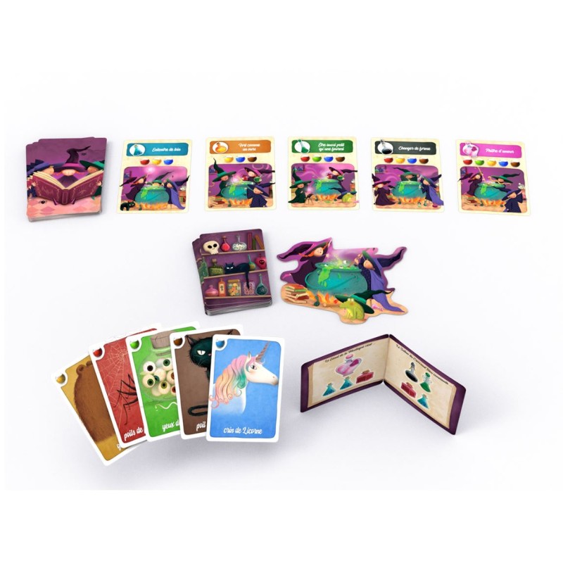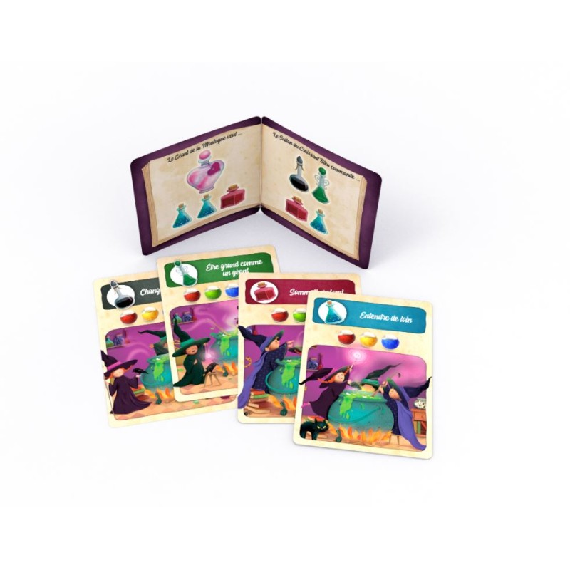 Chaque joueur choisit un manuel de sorcellerie qui lui donne le choix entre 2 "contrats" à remplir. Il faudra obtenir toutes les potions de l'une ou l'autre page.