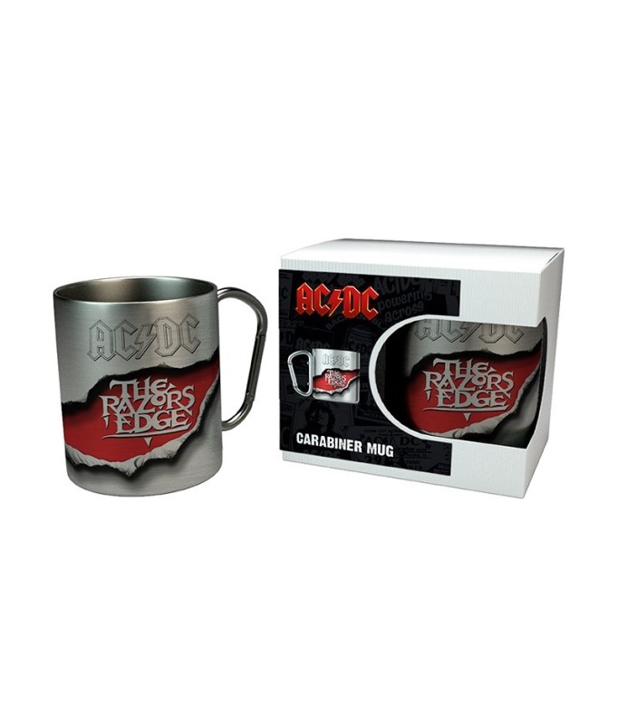 Restez à la maison ou faites du camping, mais vivez sur le fil du rasoir avec ce fantastique mug carabiner AC/DC.