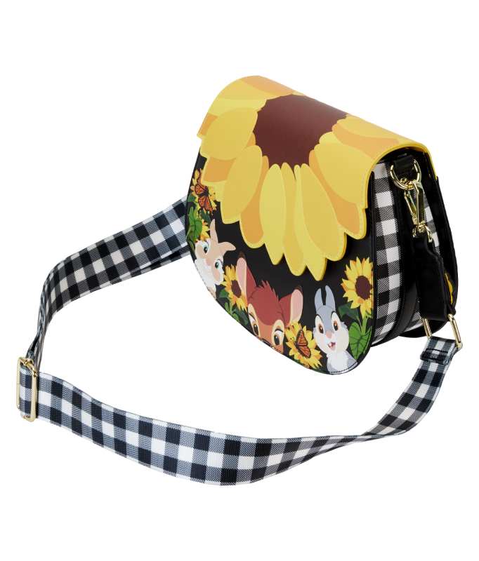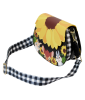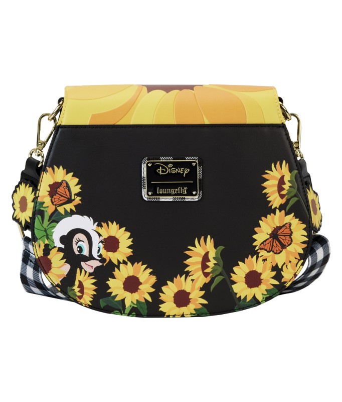 Le sac Loungefly est en cuir végétalien (polyuréthane). Il est doté d'une bandoulière réglable (détachable), d'une anse supérieure et d'accessoires dorés brillants. Les autres caractéristiques comprennent des appliqués, des franges, des broderies et des détails imprimés. Notez la doublure intérieure coordonnée.