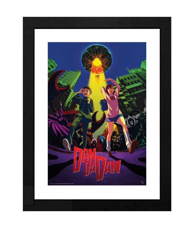 Une vache ? Enlevée par des extra-terrestres ? Ne posez pas de questions et passez votre chemin. Regardez, Momo et Okarun ont l'air à l'aise malgré la foule rassemblée derrière eux... n'est-ce pas ? Rencontrez nos protagonistes et une bande d'êtres étranges sur ce tirage encadré Dan Da Dan.