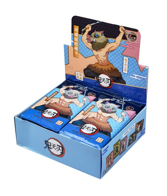 Éditée par Kayou sous licence officielle, cette série de cartes met à l'honneur Inosuke, le célèbre pourfendeur de démons au sang chaud. La boîte contient 36 boosters, chacun composé de 5 cartes en chinois.