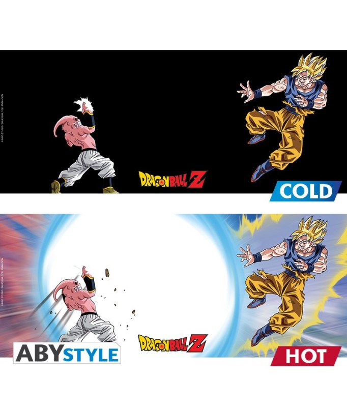 Revivez l'affrontement final entre Goku et Buu grâce ce mug thermo-réactif Dragon Ball Z par ABYstyle. Le puissant Genkidama de Goku apparaît lorsque vous versez votre boisson chaude !