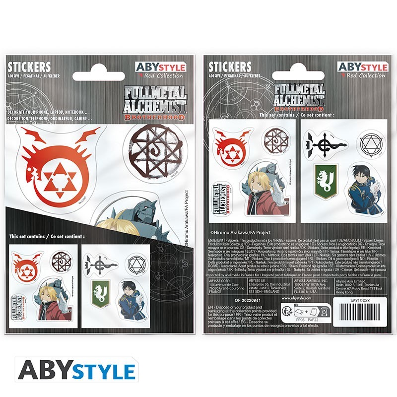 Les fans de Fullmetal Alchemist vont adorer ces mini stickers sous licence officielle par ABYstyle. Ils représentent les frères Elric, le colonel Mustang et plusieurs emblèmes de la série bien-aimée.