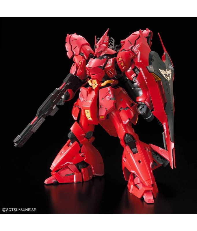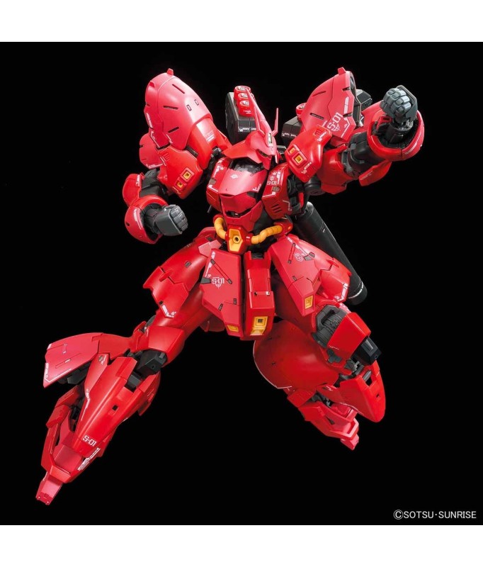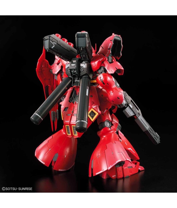 Ce kit Sazabi a été créé à la recherche d'une représentation réaliste et détaillée de la combinaison mobile de la série. Même les armements simples comme les cylindres de bras et les entonnoirs, ainsi que les mécanismes de propulsion comme les verniers et le sac à dos, ont été fidèlement recréés.