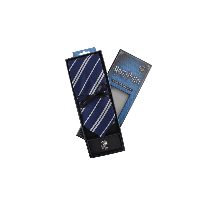 Coffret cadeau contenant une cravate sur laquelle une broderie délicate et discrète vient représenter le lion de la maison Serdaigle. Le coffret s'accompagne d'une épingle à cravate représentant le symbole de la maison.