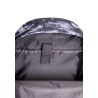 Sac à dos avec bandoulières réglables et pochette à l'avant.