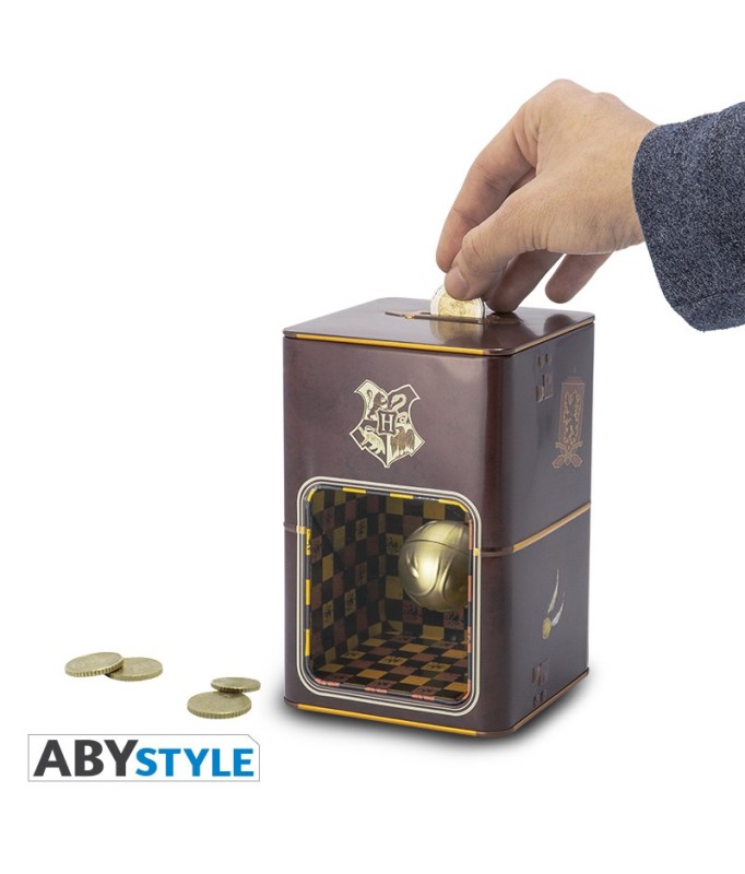 Insérez une pièce pour la voir disparaître, sans déranger le Vif d'Or qui vole paisiblement à l'intérieur de la tirelire et reste en suspension.