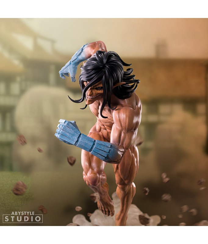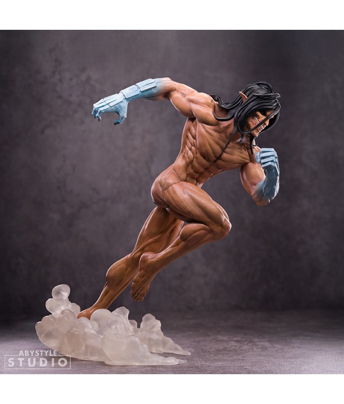 Plongez dans l'intensité de L'Attaque des Titans avec cette figurine saisissante d'Eren en forme de Titan. On le découvre en pleine course, muscles tendus, prêt à asséner un coup dévastateur. La pose dynamique et les détails impressionnants capturent toute la rage du personnage. Une pièce imposante et fidèle à l'anime, parfaite pour enrichir une collection. Un incontournable pour les fans de l'univers brutal de Shingeki no Kyojin.