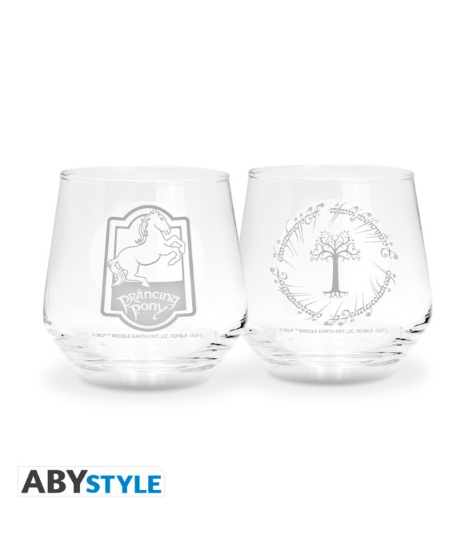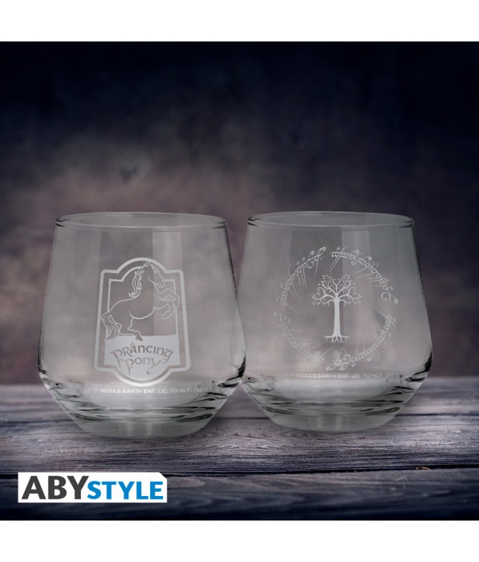 Retrouvez l'emblème du Poney Fringant ainsi que L'arbre du Gondor sur set de 2 verres Le Seigneur des Anneaux.