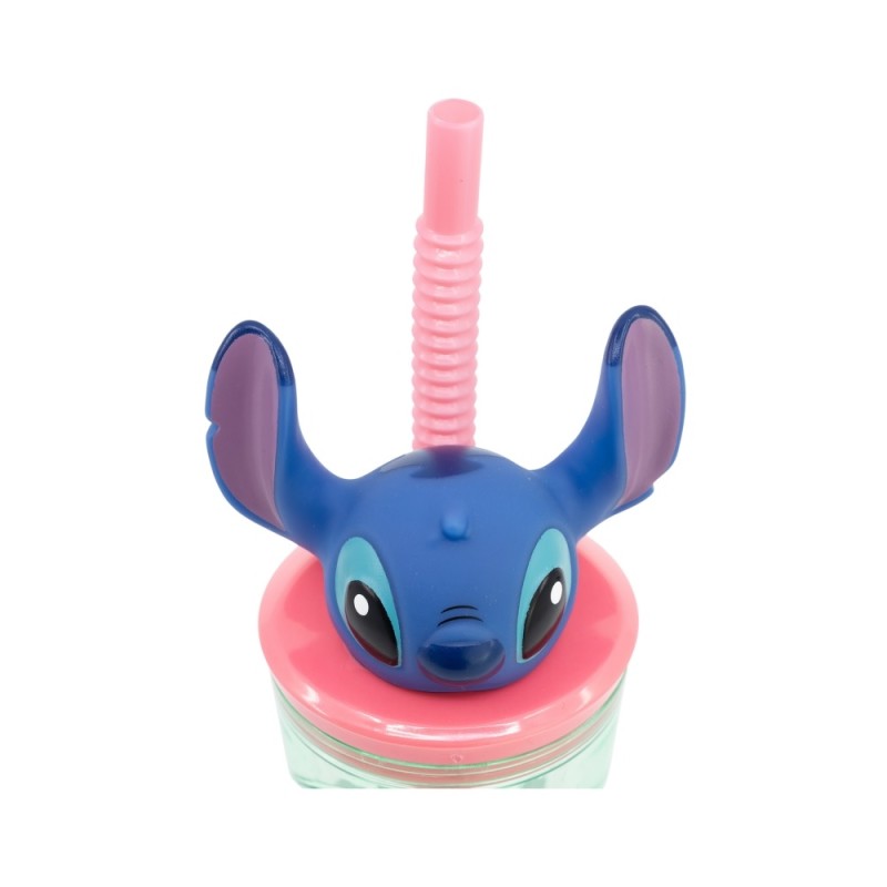 Gobelet réutilisable pour enfants avec paille et couvercle avec figurine 3D et capacité de 360 ml de Stitch