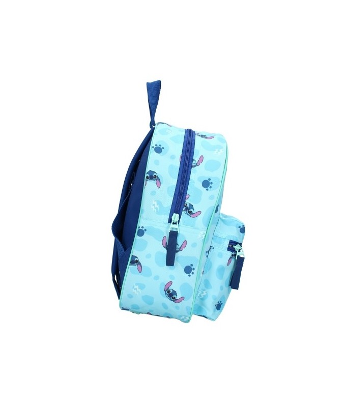 Stitch est l'un des protagonistes du film et de la série de "Lilo & Stitch". Ce extraterrestre plein d'énergie est la pièce maîtresse de ce sac à dos bleu. La poche avant et les côtés sont imprimés avec des détails assortis et des variations plus petites de Stitch. Cette poche frontale, ainsi que le grand compartiment principal, sont faciles à ouvrir et à fermer grâce à la fermeture éclair. Le sac à dos est terminé par des détails bleus sur la fermeture éclair et les lignes. Les bretelles sont réglables et le sac peut également être porté sur la boucle.