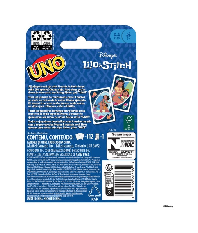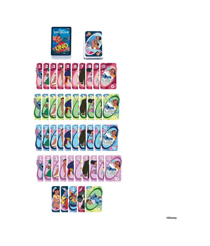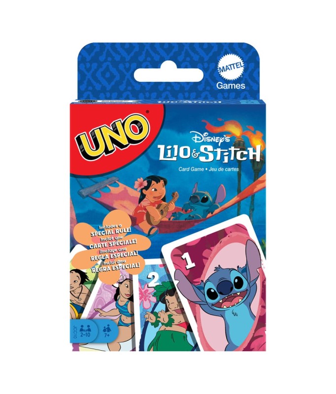 UNO Lilo et Stitch est une version du célèbre jeu de cartes Uno, inspirée par le film d'animation Lilo & Stitch. Les joueurs retrouvent l'univers coloré du film à travers les cartes mais aussi les règles.