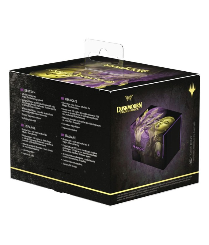 Les mystérieuses illustrations de Duskmourn: House of Horror n'inspirent pas seulement les cartes du nouveau set de Magic: The Gathering, mais aussi nos deck boxes Sidewinder ! Rejoindrez-vous le Rescue Squad autour de Tyvar, Zimone, Kaito et The Wandering Rescuer, vous rangerez-vous du côté des méchants légendaires dans la maison hantée qui n'en finit pas - ou bien trouvez-vous simplement que Kona, Rescue Beastie, est mignonne ? À vous de choisir ! Nos Sidewinder 100+ Xenoskin sont imprimés en couleur avec des illustrations sous licence officielle de Magic: The Gathering. Les boîtes à cartes sont fabriquées en Xenoskin résistant et ont un intérieur en microfibre de haute qualité. Les Sidewinder offrent de la place pour 100 cartes (double-sleeve) ou 120 cartes (single-sleeve) - et sont parfaitement assorties à l'Omnihive 1000+ Xenoskin de la série Duskmourn !