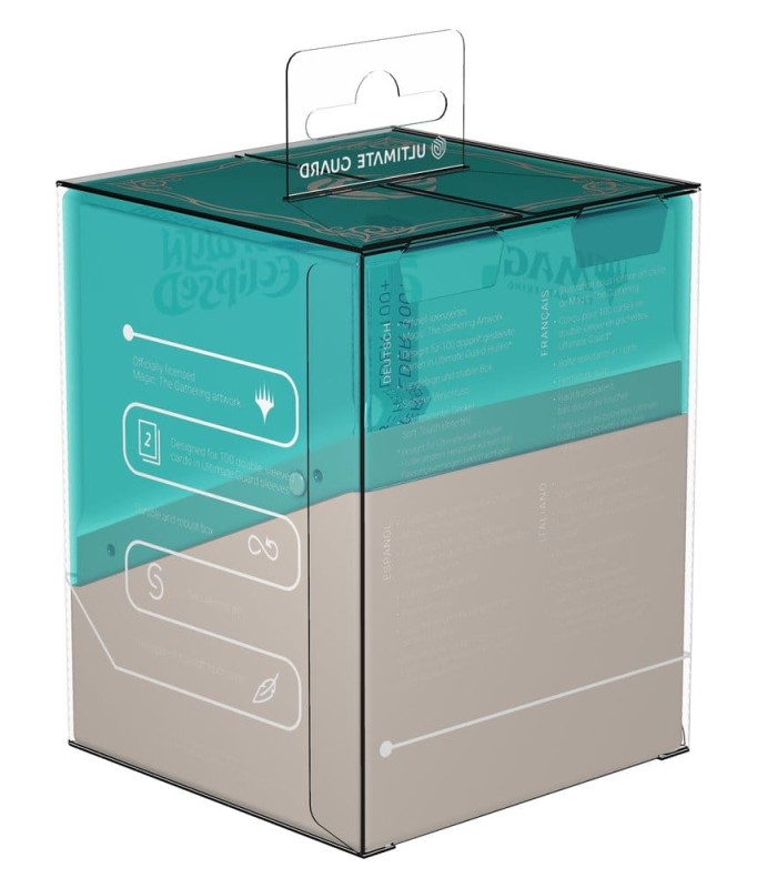 Le Boulder 100+ d'Ultimate Guard est une deck box MTG robuste et fiable, imprimée avec des illustrations sous licence officielle de l'extension "Lorwyn Eclipsed" de Magic: The Gathering. Malgré sa fermeture sécurisée, le Boulder 100+ s'ouvre facilement et offre de la praticité, tout en pouvant contenir 100 cartes en double-sleeve avec des pochettes Ultimate Guard*, ce qui en fait la deck box idéale pour tous les formats de Magic (Commander/EDH, Modern, Standard, etc.). Conçu pour être combiné avec toutes les boîtes de rangement massif Ultimate Guard, le Boulder s'intègre particulièrement bien dans les Arkhive, Superhive et Flip'n'Tray.