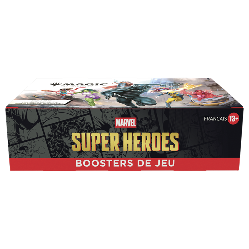 L'univers Marvel débarque en force ! Une équipe all-star de gros cogneurs passe des pages de BD au champ de bataille, et le destin du monde est en jeu. Rassemblez l'équipe de super-héros et de super-vilains de vos rêves, puis équipez-les de leur équipement emblématique, avant d'utiliser leurs redoutables capacités. Envolez-vous, frappez et fracassez pour remporter la victoire dans Magic: The Gathering | Marvel Super Heroes !