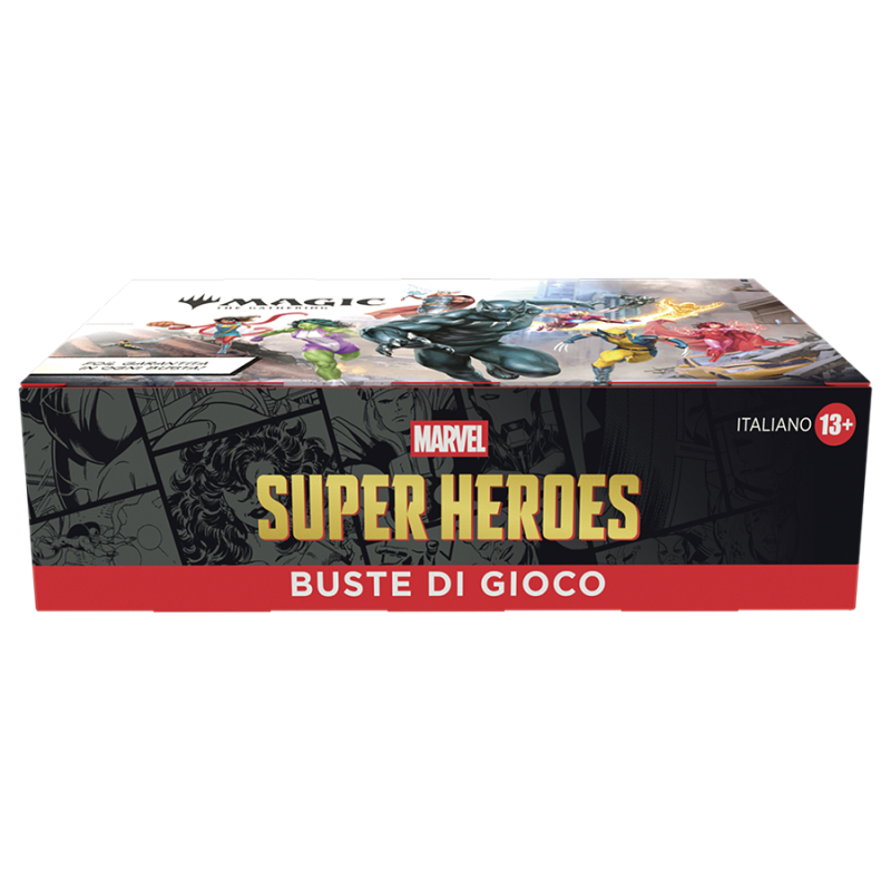 L'univers Marvel débarque en force ! Une équipe all-star de gros cogneurs passe des pages de BD au champ de bataille, et le destin du monde est en jeu. Rassemblez l'équipe de super-héros et de super-vilains de vos rêves, puis équipez-les de leur équipement emblématique, avant d'utiliser leurs redoutables capacités. Envolez-vous, frappez et fracassez pour remporter la victoire dans Magic: The Gathering | Marvel Super Heroes !