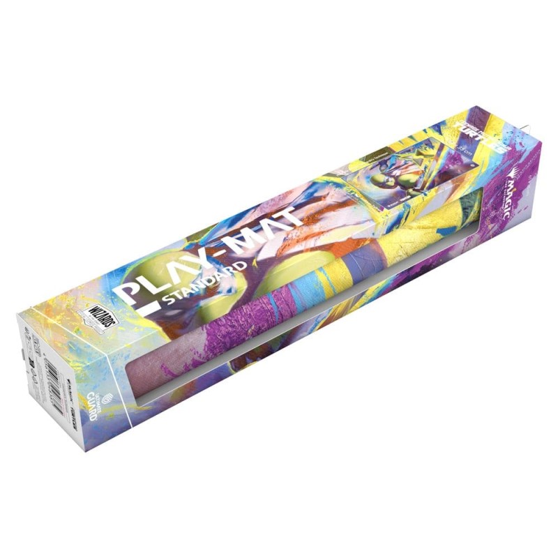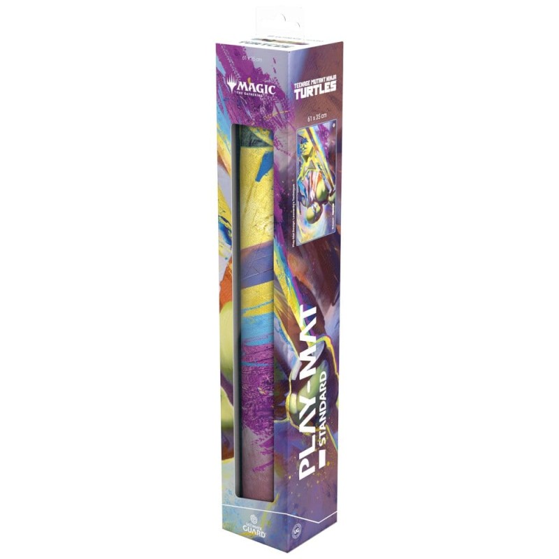 Le Play-Mat Standard d'Ultimate Guard, avec des illustrations officielles de l'extension "Magic: The Gathering | Teenage Mutant Ninja Turtles", est un tapis de jeu MTG de taille standard (61 x 35 cm) de haute qualité, conçu pour améliorer l'expérience de jeu et protéger les cartes, les pochettes et les accessoires des rayures, de l'usure et de la saleté. Fabriqué en caoutchouc naturel et avec un rembourrage doux de 2 mm, ce playmat offre une surface en tissu résistante et un dessous antidérapant fiable signé Ultimate Guard. Les bordures cousues empêchent l'effilochage et garantissent une grande durabilité sur le long terme.