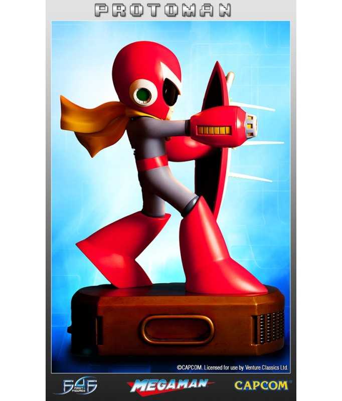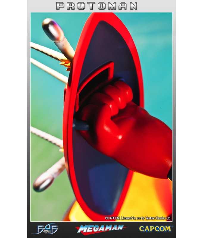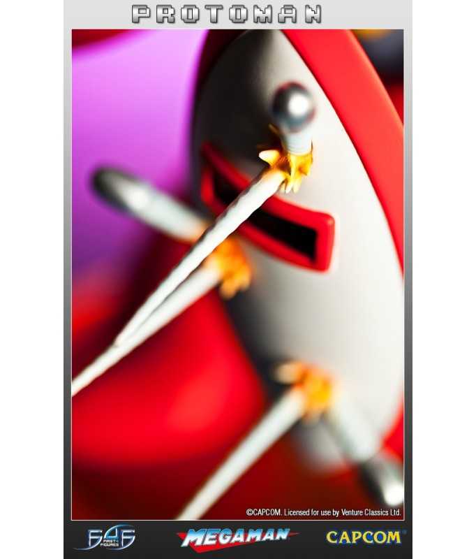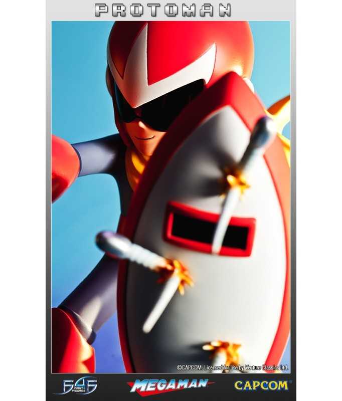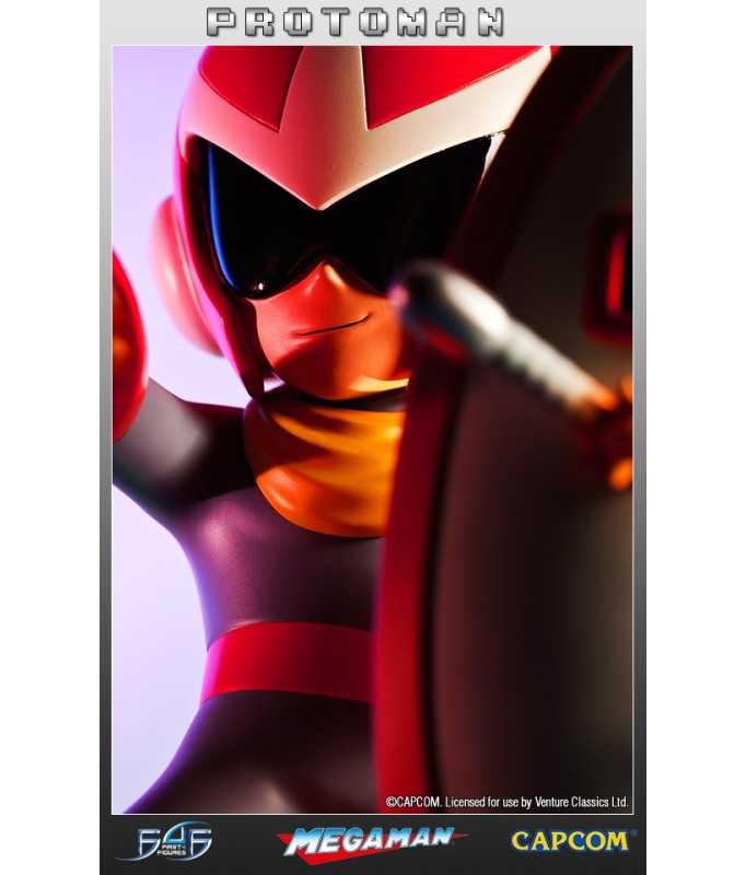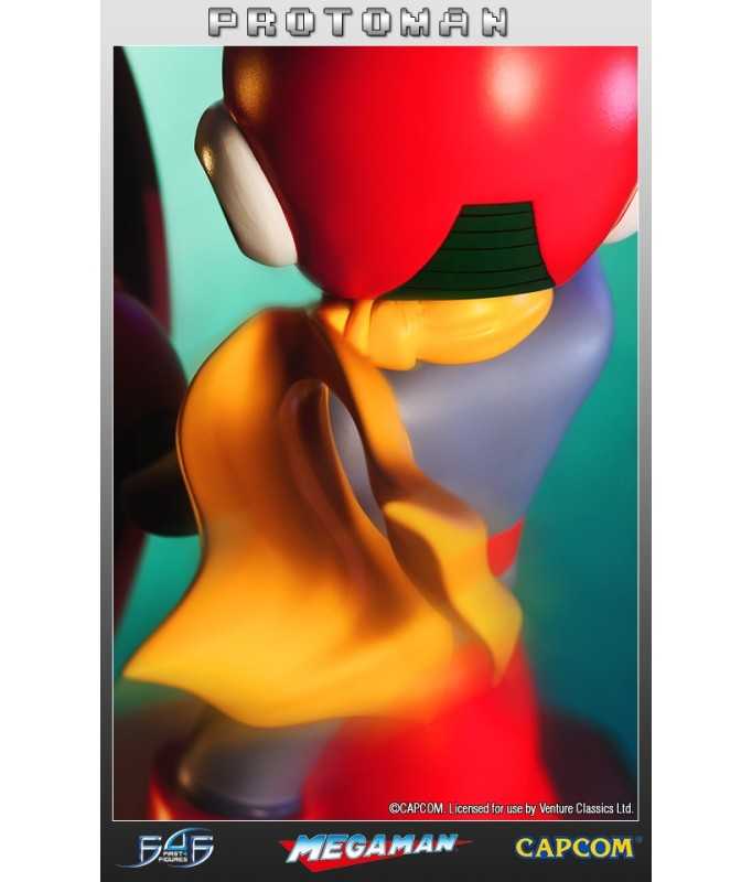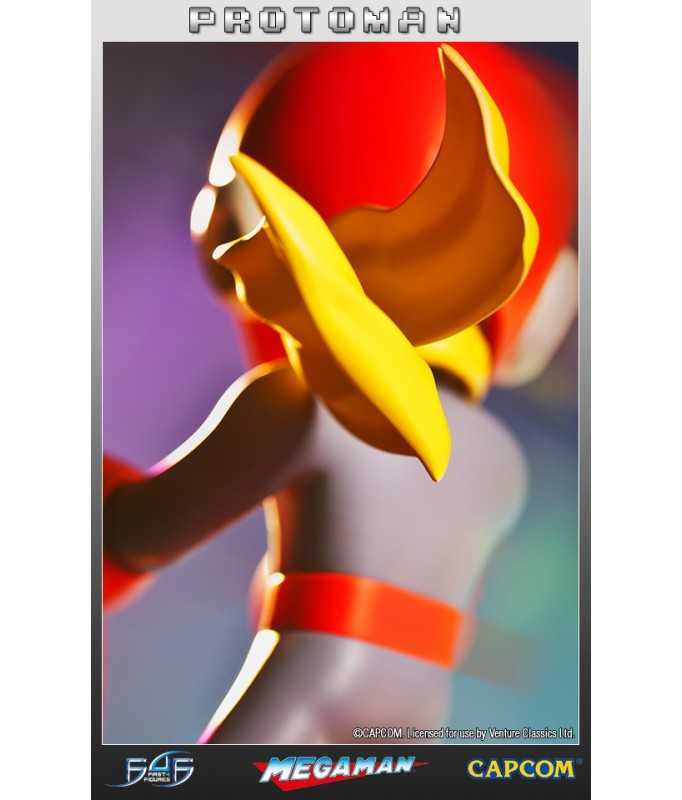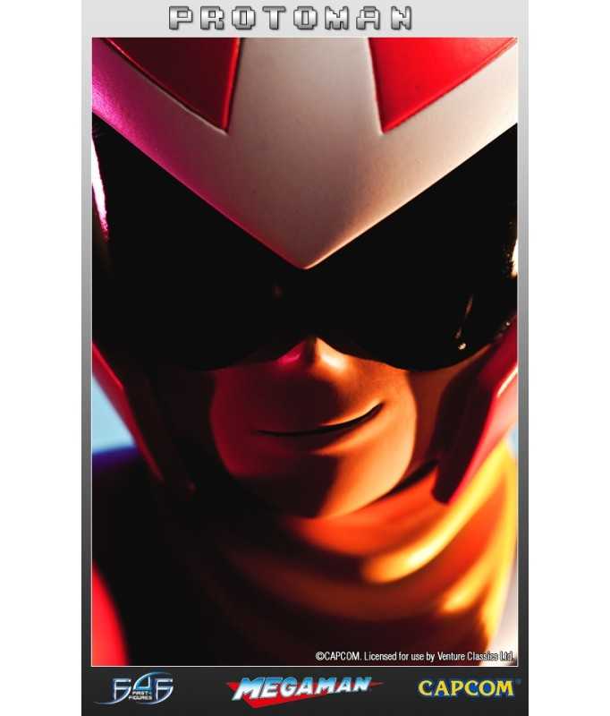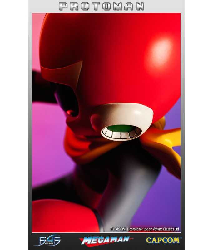 First 4 Figures est fier de vous présenter Proto Man : le mystérieux Robot Master masqué qui a fait ses débuts dans Megaman 3 sur Nintendo Entertainment System. Proto Man est debout en train de dévier les tirs ennemis à l'aide de son bouclier Proto, faisant ricocher les balles dans toutes les directions. En même temps, il charge un tir de représailles avec son Proto Blaster monté sur le bras.