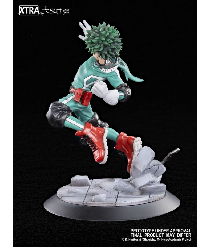 Lors d'un exercice dans le cadre de leur scolarité, Midoriya affronte Bakugo, et il donne tout ce qu'il a pour remporter la fictoire. Cette figurine Xtra by Tsume le représente, en pleine extension, décrochant un Detroit Smash en l'air pour vaincre son ami. Elle dispose de deux têtes alternatives, nue ou avec le masque ravagé par la puissance des attaques de Bakugo, mais affichant toutes les deux la même détermination dans le regard du nouveau symbole de la justice.
