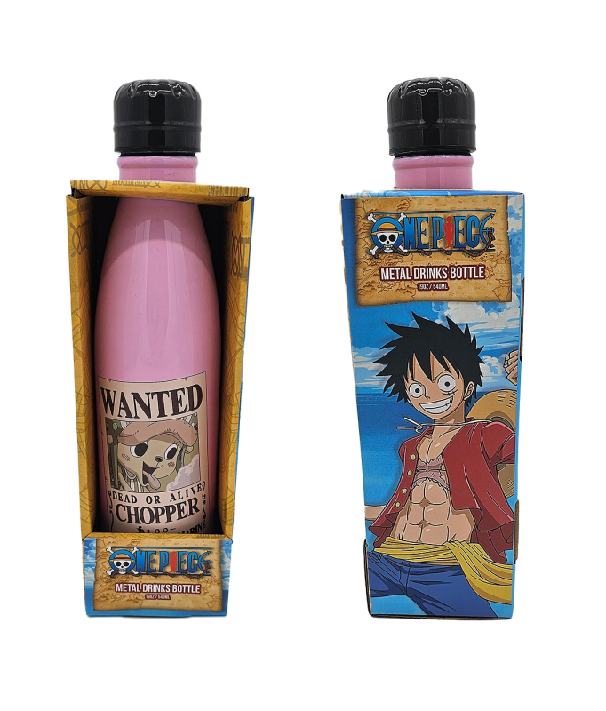 Bouteille en métal, sous licence officielle "One Piece", co-produite par Genki & Pyramid, représentant Tony-Tony Chopper sur son affiche Wanted.