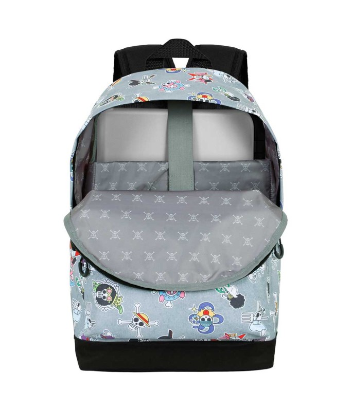 -Sac à dos HS FAN 2.0 One Piece Skull Symbols. One Piece. Sac à dos urbain léger avec un seul compartiment. Doublure intérieure avec poche pour appareils électroniques. Poche avant, bretelles rembourrées réglables et sangle arrière pour chariot.